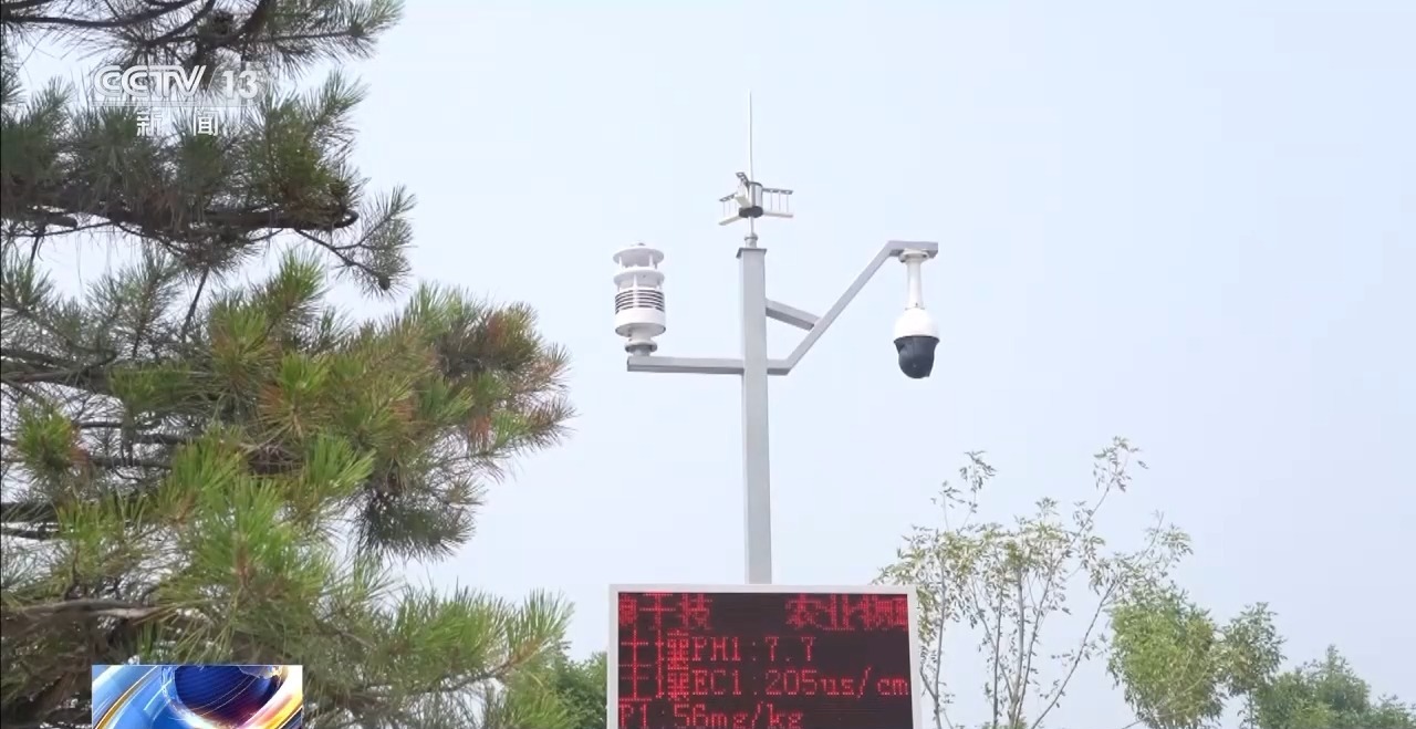 在平原示范區,記者還發現了一個“新基建”,一根桿集成了高清攝像頭、氣象系統、土壤監測系統等多個裝置。
