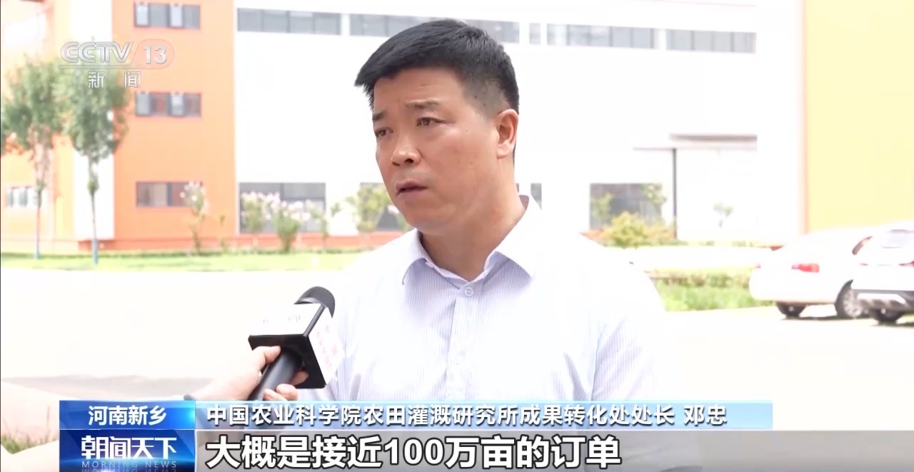 中國農業科學院農田灌溉研究所成果轉化處處長 鄧忠:我們又接手了大概100萬畝的訂單,結合各個縣不同的地域、水源情況、作物種植類型、種植結構,制定標準化的設計方案。現在這個市場機遇確實是非常大。
